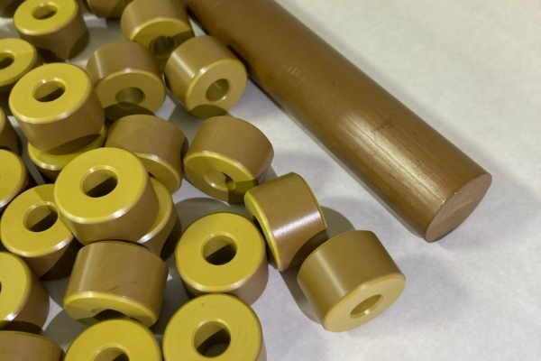 Drake estrude prodotti a partire da resine ad alto peso molecolare, che presentano una maggiore tenacità, e raffredda lentamente le forme finite per ridurre al minimo le tensioni residue. Entrambi i fattori hanno contribuito a risolvere il problema delle prestazioni. Drake si è quindi occupato della differenza di costo realizzando un’asta di diametro personalizzato che corrispondesse al diametro esterno del pezzo. L’efficienza del materiale del pezzo lavorato corrispondeva quindi alla versione stampata a iniezione, compreso il canale di scorrimento. Drake ha poi impiegato una lavorazione ad alta velocità che ha avvicinato il tasso di produzione dello stampaggio a iniezione.