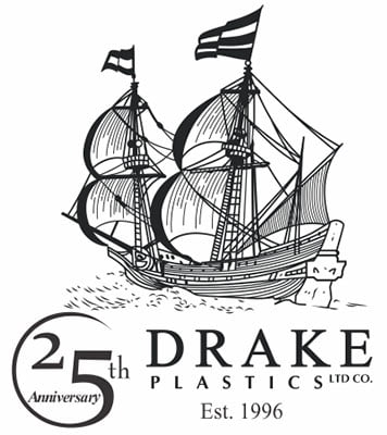 Il logo di Drake Plastics è una rappresentazione della nave preferita di Sir Francis Drake, The Golden Hind. Lo stemma di DRAKE presenta la mano di Dio che guida la nave con la scritta Auxilio Divino sul braccio. Traduzione: Con l’aiuto divino. La leggenda della famiglia Quance narra che Sir Francis Drake fosse un lontano antenato: entrambe le famiglie provenivano dalla zona del Devon, in Inghilterra.